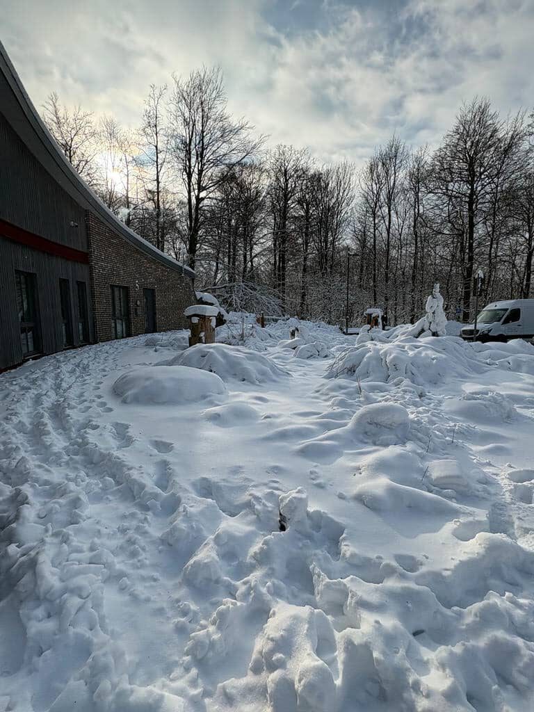 Reichlich Schnee macht die Zufahrt zum Bungsberg sehr schwierig.
